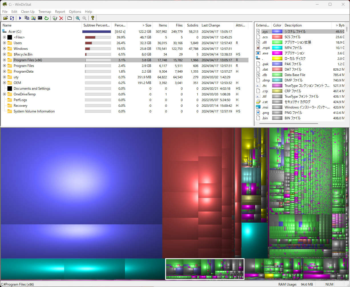 ![]() SSD増設後の使用量 122.2GB(steamライブラリ移動後) |